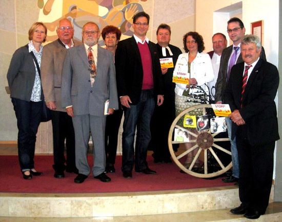 v.r.: Bürgermeister Werner Braun; SPD OV-Vorsitzender Armin Buchner; Rainer Pasta, Sprecher SPD AK Labertal; Ruth Müller, SPD-Kreisvorsitzende Landshut; Pfarrer Thomas Klenner, MdB Florian Pronold; Renate Kuntze, Kreisrätin; Dieter Gipser SPD OV-Mallersdorf; Hartmut Gust und Madlen Melzer stv. SPD OV-Vorsitzende bei der Ausstellungseröffnung