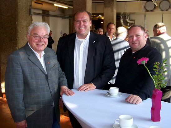Für den SPD- Arbeitskreis Labertal besprechen sich Martin Auer und Rainer Pasta mit dem SPÖ - Bürgermeister Thomas Punkenhofer um das Treffen des Gedenkvereins perspektive Mauthausen in Flossenbürg vorzubereiten