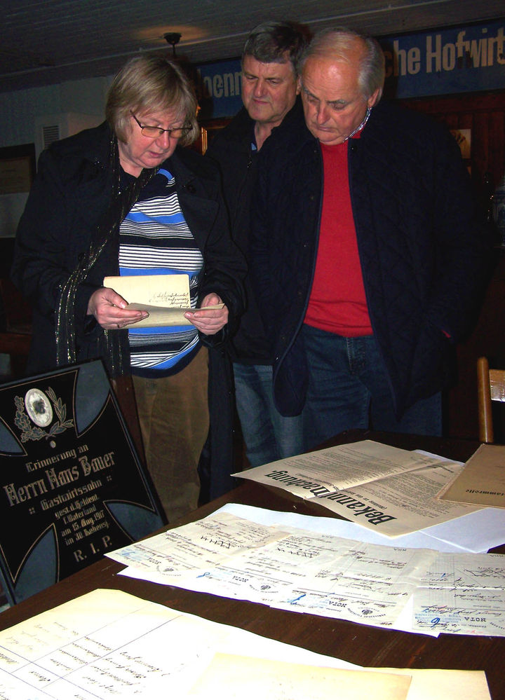 Natürlich wurden in Sünching auch eine Reihe von Bildern und Postkarten gezeigt, die sich mit dem Leben und Sterben der Soldaten im Krieg beschäftigen. Besonders ausführlich wurden die Brüder Anton und Ludwig Simeth aus Sünching von Isa Simeth aus Regensburg vorgestellt. Anton Simeth war Kriegsflieger, sein Bruder Flugzeugmonteur in Schleißheim der u.a. in Den Vogesen kämpfte. Doch der Schwerpunkt lag in Sünching eindeutig anders. Viele Originaldokumente aus den Kriegsjahren 1914-18 steuerte Willi Zölch in seiner Funktion als Gemeindearchivar bei. Die königlichen und kaiserlichen Gesetzbücher im Gemeindearchiv Sünching dokumentieren den Kriegsbeginn, die Einberufungen sowie die staatlichen Maßnahmen zur Aufrechterhaltung der Versorgung. Die Musterungslisten und Bekanntmachungen der Militär- und Verwaltungsbehörden belegen die vielfältigen Auswirkungen auf das tägliche Leben der Menschen. Väter, Brüder und Söhne mussten ins Feld; die Sicherung der Ernte, ob nun durch beurlaubte Soldaten oder eingesetzte Kriegsgefangene musste organisiert werden, die Lebensmittel wurden gestreckt und Preiswucher versuchte man durch Höchstpreisfestlegungen zu unterbinden. Die vielen gemeindlichen Dokumente tragen die Unterschrift des damaligen Bürgermeisters Xaver Wild. In der „Hofwirtschaft“ des Heimatmuseums, in der die Fundstücke ausgestellt wurden, lächelte dieser von einer 100 Jahre alten Schützenscheibe auf die Besucher herab. „Näher und lebendiger kann Heimatgeschichte nicht sein“, so Rainer Pasta, der mit Archivarin Karin Hagendorn und mit Unterstützung der SPD-Ortsvereine, repräsentiert von Karlheinz Mass (Aushausen) und Hans Pangerl (Sünching), die Geschichtswerkstatt organisiert und durchgeführt hat.