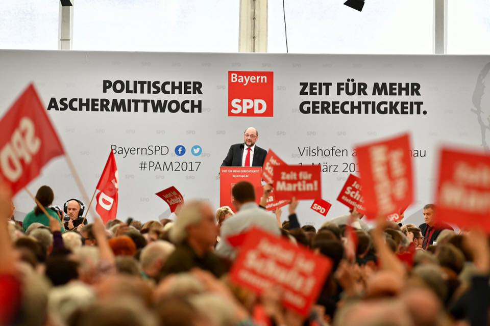 „Jetzt ist Schulz!“, „Zeit für Martin!“, hielten die Genossinnen und Genossen hunderte rote Plakate hoch. 5.000 Menschen heizten in Vilshofen das größte Bierzelt Bayerns auf.