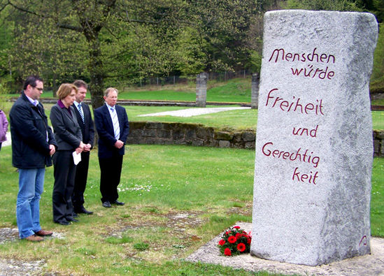 Schierling (pas): Der SPD-Ortsverein Schierling organisierte mit dem SPD-AK Labertal am 8. März, dem 65. Jahrestag der Kapitulation Nazideutschlands, eine „Fahrt gegen das Vergessen“ nach Flossenbürg. Das KZ Flossenbürg war Ausgangs- und für rund 5000 tote Häftlinge auch Endpunkt der berüchtigten Todesmärsche – auch durch das Tal der Kleinen und Großen Laber. Die Außenlager des KZs reichten bis nach Regensburg, Obertraubling, Plattling, Landau und Ganacker. Im KZ Flossenbürg wurde aber auch wenige Tage vor Kriegsende der Theologe Dietrich Bonhoeffer feige ermordet. In Flossenbürg litten und starben viele bayerische Sozialdemokraten. „Gründe genug“, fand Arbeitskreis-Sprecher Rainer Pasta, „um am Jahrestag der Kapitulation eine Fahrt vom Labertal aus zur Gedenkstätte nahe der tschechischen Grenze zu unternehmen.“ Die SPD-Landtagsabgeordneten Annette Karl und der für die Region zuständige Bundestagsabgeordnete Werner Schieder nahmen an der Gedenkfeier in Flossenbürg teil.