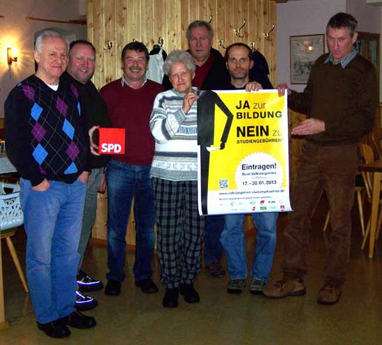 Beim nächsten Tagesordnungspunkt über das am Donnerstag gestartete Volksbegehren „NEIN zu Studiengebühren“ wurde lange diskutiert. Der Vorsitzende Hubert Wittmann wies auf die Eintragsmöglichkeit in Aufhausen an den beiden Montagen (21.01. und 28.01.2013) von 18.30 bis 19.30 Uhr im Gemeindezentrum hin. Unklar war allerdings in wie weit der Antrag des Gemeinderats Karlheinz Maß zur Verlängerung der Eintragsmöglichkeit umgesetzt wird.
