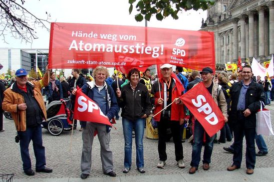 Total glücklich kehrte die Delegation der SPD-Ortsvereine Langquaid, Schierling und Rohr am Wochenende von der großen Anti-Atom-Demonstration in Berlin mit rund 100.000 Teilnehmern zurück. Die Abordnung aus dem Labertal demonstrierte mit allen anderen gegen den von der schwarzgelben Koalition mit den vier Atom-Konzernen ausgehandelten Vertrag über eine Verlängerung der Laufzeiten der Atomkraftwerke.