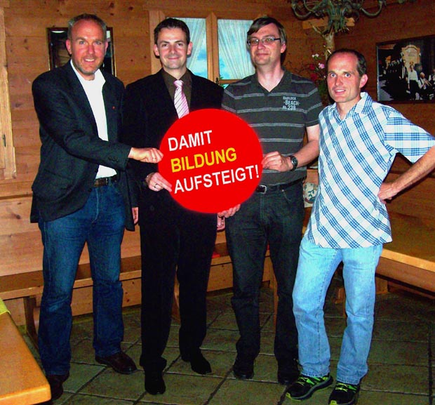 Fordern, dass die Staatsregierung Gemeinschaftsschulen ermöglicht, wo sie von den Eltern gefordert werden. Bis zur zehnten Klasse würden Mittel-, Realschüler und Gymnasiasten dann gemeinsam unterrichtet. Nur so könne vielfältiges, wohnortnahes, intelligentes und reichhaltiges Lernen ermöglicht werden. (v.l.) Peter Stranninger, Martin Kreutz, Johann Kolbeck und Hubert Wittmann.