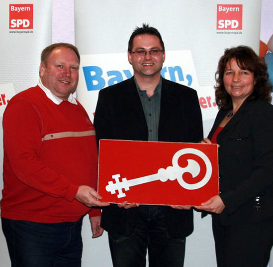 Übergeben den Schlüssel für die neue Geschäftsstelle an Ortsvorsitzenden Armin Bucner (Mitte): Die Sprecher des AK Labertal Ruth Müller und Rainer Pasta