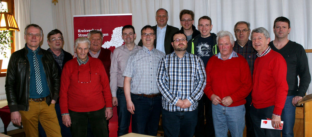 Der Kreisverband diskutierte generationenübergreifend die Umfrageergebnisse: Vertreter der Ortsvereine mit Kreisvorsitzendem Martin Kreutz (5.v.li) und seinen Stellvertretern Stefan Diewald (6.v.li) und Martin Schießwohl (7.v.li) sowie Bürgermeister und Kreisrat Fritz Fuchs (li).