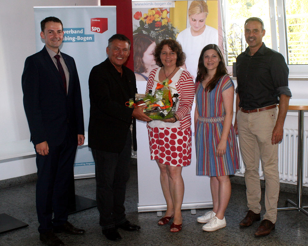 Freuten sich am Ende eines interessanten Fachgesprächs mit intensiver Diskussion: (v.li) SPD-Kreisvorsitzender Martin Kreutz, Leiter der Tk Bayern, Martin Bredl, Ruth Müller, MdL, Juso-Bundesvorsitzende Johanna Uekermann und Christian Schwarz, stellvertretender Vorstand des Kommunalunternehmens Kreiskliniken Bogen-Mallersdorf