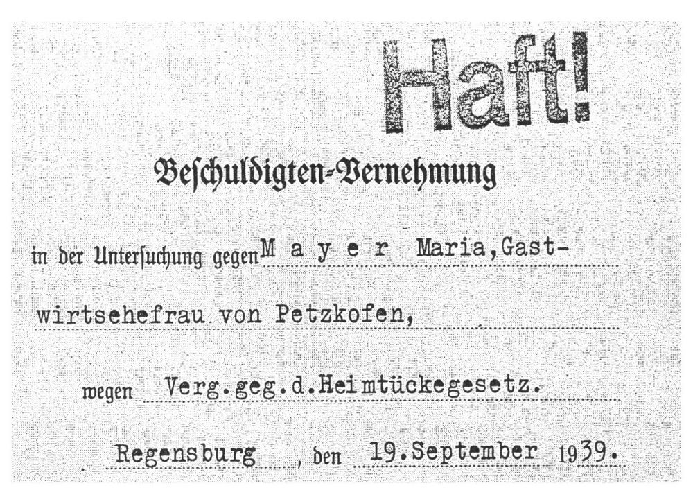 Anhand des Beispiels der Petzkofener Gastswirtsfrau Maria Mayer wird über die Folgen unerlaubten Handelns in der Nazi Zeit berichtet