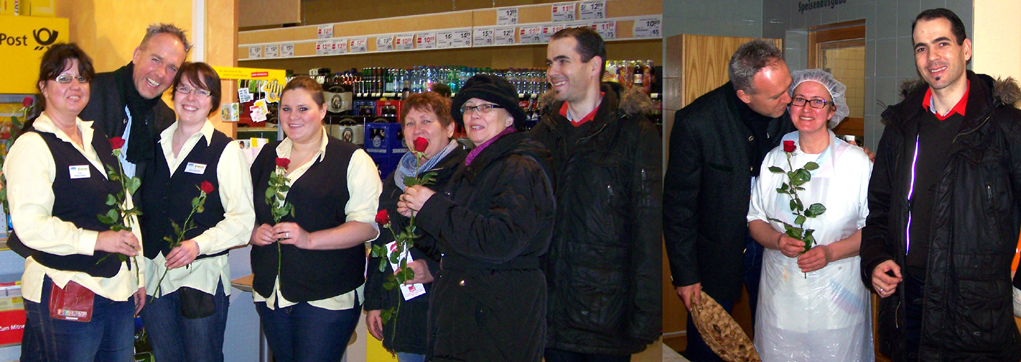 Weltweit setzen sich Frauen am internationalen Frauentag am 8. März gegen Diskriminierung, für Menschenrechte und eine sozial gerechtere Welt ein. Seit vielen Jahren weist die Geiselhöringer SPD die Wählerinnen mit einer roten Rose auf diesen Termin hin und bekräftigt, dass Frauenziele nur erreicht werden können, wenn viele Frauen für ein politisches Mandat kandidieren und alle Frauen wählen gehen. Unterstützt wurde die Aktion heuer vom Landtagskandidaten der SPD, Peter Stranninger und binnen zwei Stunden waren 300 Rosen und Schoko-Küsschen an die Frau gebracht.
