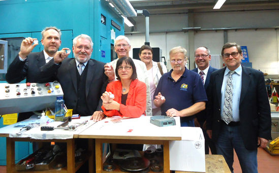 Niederbayern (pas): Auf Einladung des Leiter des Bayerischen Hauptmünzamtes, Herrn Waadt und den Vertretern der MDM Münzhandelsgesellschaft Deutsche Münze waren die drei Niederbayerischen Angeordneten Johanna Werner-Muggendorfer, Berhard Roos und Reinhold Perlak sowie Vertreter der niederbayerischen SPD gestern beim Anprägen der ersten Münzen im Bayerischen Hauptmünzamt in München dabei. Mit vier mächtigen Schlägen prägte jeder der Anwesenden seine ganz persönliche Gedenkmünze mit dem Motiv der Burg Trausnitz zum Start der Produktion der abschließenden Serie.