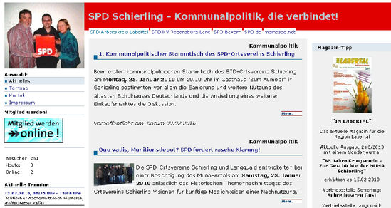 Damit hat die SPD in der Region ein weiteres Portal, über das sich die Bürgerinnen und Bürger über die SPD an sich und speziell die Arbeit im Ortsverein Schierling informieren können.