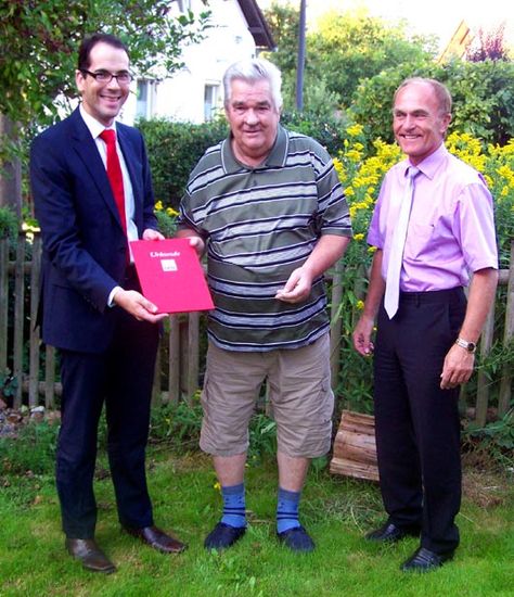 v.l. SPD-Ortsvereinsvorsitzender Johannes Faden, Jubilar Johann Franzspeck und 3.BGM Harry Büttner