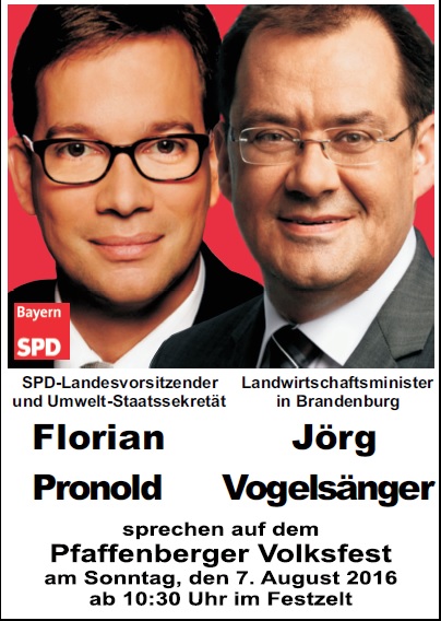 Zusammen mit Florian Pronold, Parlamentarischer Staatssekretär im Bundesumweltministerium und Landesvorsitzender der BayernSPD, wird Vogelsänger zu aktuellen Themen in der Landwirtschaft, dem Umweltschutz und der allgemeinen politischen Entwicklung Position beziehen. Die Veranstaltung ist öffentlich.