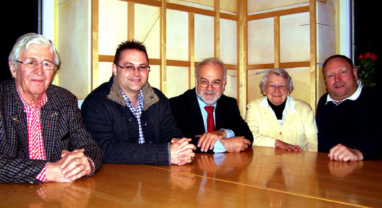 Ein Treffen mit alten und neuen Freunden: Die Mitglieder des AK Labertal Armin Buchner aus Schierling (2.v.li.) und Rainer Pasta aus Geiselhöring (re.) trafen bei der Bundesversammlung der Seliger Gemeinde in Bad Alexandersbad die beiden Ausstellungsbetreuer Gustl Roth (li.) und Karl Garscha (Mitte) wieder. Ein besonderes Kennenlernen gab es mit Olga Sippl (92) (2.v.re), der „Grande Dame“ der Seliger Gemeinde, die dem AK Labertal bescheinigte: „Wie der AK-Labertal unsere Ausstellung „Von der DSAP zur Seliger Gemeinde – Sozialdemokratische Sudetendeutsche“ in der Region Labertal umgesetzt hat, ist einmalig. Mit so viel Herzblut und Engagement müssen unsere sozialdemokratischen Werte vermittelt werden, dann ist mir um die Zukunft nicht bange!“