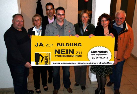 „Das Volksbegehren zur Abschaffung der Semesterbeiträge befindet sich in der heißen Phase. Noch bis 30. Januar können sich die Bürgerinnen und Bürger aktiv an einer politischen Entscheidung beteiligen“, so der Sprecher des SPD-AK Labertal, Rainer Pasta, bei der Sitzung der Ortsvereinsvorsitzenden in Geiselhöring. Das Bündnis gegen Studiengebühren in Bayern, an dem SPD, Freie Wähler, Grüne, Studenten und Gewerkschaften beteiligt sind, muss binnen zwei Wochen bayernweit gut 940.000 Unterschriften sammeln, um einen Volksentscheid zu erzwingen.