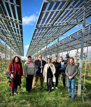 Deutenkofen – Bezirksrätin und Bürgermeisterin Sibylle Entwistle, Bezirksrat und Oberbürgermeister Jürgen Dupper aus Passau sowie die Landtagsabgeordnete Ruth Müller und die Kreisräte Peter Forstner und Franz Göbl besuchten die Bezirkseinrichtung Obstbau Deutenkofen, um sich über die Fortschritte der neuen Photovoltaikanlage (PV-Anlage) zu informieren.