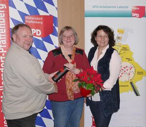 Nachdem sie die letzten 5 Jahre an der Seite von Rainer Pasta als stellvertretende Sprecherin des AK Labertal die Geschicke der Labertaler SPD mitgestaltet hat, gab Ruth Müller, Landtagsabgeordnete aus Pfeffenhausen ihr Amt ab. Mit einstimmigem Beschluss wurde Karin Hagendorn, stellvertretende Ortsvorsitzende aus Hohenthann zur 2. Sprecherin des AK Labertal bestimmt. Ruth Müller gratulierte ihr mit den Worten: „Schön, dass wieder eine Frau und noch dazu aus meinem Stimmkreis in der Führung des AK Labertal aktiv ist!“ Rainer Pasta dankte Ruth Müller für ihr bisheriges Engagement und verband diesen Dank mit der Hoffnung, sie auch weiterhin regelmäßig als Abgeordnete beim AK Labertal begrüßen zu dürfen. Mit Karin Hagendorn klappe die Zusammenarbeit bestens, wie die Aktionstage zur Geschichtswerkstatt gezeigt hätten und er freue sich auf viele neue Impulse, so Rainer Pasta, der als AK Sprecher ebenfalls einstimmig bestätigt wurde.
