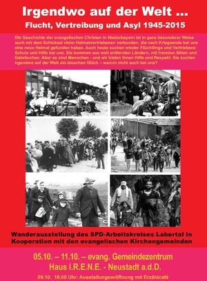 Um Flucht und Vertreibung geht es in einer Ausstellung, die ab Montag im evangelischen Gemeindezentrum "I.R.E.N.E" an der Schillerstraße gezeigt wird. Es ist ein Thema, das aktueller nicht sein kann. Allerdings ist der Inhalt dieser Ausstellung nicht die aktuelle Flucht hunderttausender Menschen über das Mittelmeer nach Europa, sondern die Ankunft evangelischer Christen aus Schlesien nach dem Zweiten Weltkrieg in Bayern.