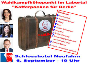 Am Mittwoch, den 6. September, um 19 Uhr findet im Schlosshotel Neufahrn der SPD-Wahlkampfhöhepunkt im Labertal statt.