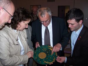 Vor einem knappen Jahr wurde die Himmelsscheibe von Nebra in das UNESCO-Weltdokumentenerbe aufgenommen – sehr zur Freude des Landes Sachsen-Anhalt und seinem Landesmuseum für Vorgeschichte in Halle. Einer, der von Anfang an bei der Sicherstellung dieser einmaligen über 3.600 Jahre alten Bronzescheibe dabei war, ist der Schierlinger Archäologe und Leiter der Öffentlichkeitsarbeit des Landesamtes für Denkmalpflege und Archäologie sowie des Landesmuseums für Vorgeschichte, Dr. Alfred Reichenberger. In einem packenden Vortrag im Restaurant Top Four schilderte er die Sicherstellung dieser einmaligen Bronzescheibe aus der Bronzezeit aus den Händen von Raubgräbern und deren Hehlern sowie den Nachweis über die Echtheit und die astronomische Bedeutung für die Menschen vor 3.600 Jahren. Bei der Frage der Herkunft der Materialien führte Dr. Reichenberger sein Publikum quer durch Europa. Das Motto der Veranstaltung des SPD-Arbeitskreises Labertal und der Schierlinger SPD, „Sonne, Mond und Sterne über Europa. Die Himmelsscheibe von Nebra und die Europa-Connexion der Bronzezeit“, passte genau zum Vortrag und zum Europatag am 9. Mai. Musikalisch leitete Valerian-Marcus Thielicke, einer der Europakandidaten des Bezirks Niederbayern, auf der Violine mit der Europa-Hymne die Veranstaltung ein und er schloss sie damit auch stimmungsvoll ab.
