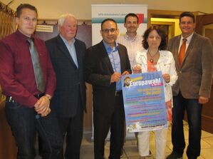 Wir wählen Europa – Du auch! (v.re.) fordern 1. Bürgermeister Peter Forstner, Ruth Müller, MdL, Martin Kreutz, 3. Bürgermeister aus Mallersdorf-Pfaffenberg, Ismail ertug, MdEP, Gemeinderat Adolf Biberger und Bruno Dengel