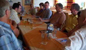 Johannes Faden, SPD-Ortsvorsitzender in Geiselhöring, Gastgeber Martin Panten, SPD-Unterbezirksvorsitzender, Kreisvorstandsmitglied und Parkstettener SPD-Ortsvorsitzender, SPD-Geschäfsführerin und Straubinger Stadträtin Christine Schrock, der Straubinger Altoberbürgermeister und Landtagsabgeordnete Reinhold Perlak, Michael Adam, Bundestagsdirektkandidat 2009 und Bodenmaiser Bürgermeister sowie Unterbezirksvorstandsmitglied Petra Penzkofer-Hagenauer.
