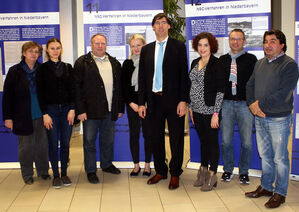 Freuten sich die Ausstellung in Straubing präsentieren zu können: (v.l.) Schulleiterin Barbara Kasberger, Juso-Vertreterin Verena Klinger, AK-Sprecher Rainer Pasta, Christine Sommerfeld, Stadtverbandsvorsitzender Dr. Olaf Sommerfeld, Geschichtslehrerin Sabrina Zwicknagl, Jürgen Karbstein und Stadtrat Nail Demir