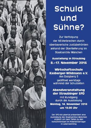 Bereits letztes Jahr präsentierte der SPD-Arbeitskreis Labertal eine zeitgeschichtliche Ausstellung in der Wirtschaftsschule Kasberger-Wildmann in Straubing. Dieses Jahr zeigt der Arbeitskreis eine Ausstellung des Staatsarchivs München, das auf 12 Ausstellungstafeln die Ermittlungen und Strafverfahren wegen Nationalsozialistischer Gewaltverbrechen zeigt. Die Wanderausstellung gastiert in der Wirtschaftsschule Kasberger-Wildmann vom 9.-17. November und kann werktags zu den üblichen Schulzeiten besichtigt werden.