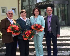 Eine besondere Überraschung hatte der stellvertretende Fraktionsvorsitzende der SPD- Kreistagsfraktion, Sebastian Hutzenthaler für drei Kreistagskollegen am Rande der Fraktionssitzung im Landratsamt parat: Mit einem Blumenstrauß bedankte er sich bei Gerhard Babl (Velden), Christel Engelhard (Altdorf) und Ruth Müller, MdL (Pfeffenhausen) für jeweils zwei Jahrzehnte kommunalpolitischer Tätigkeit im Kreistag von Landshut.