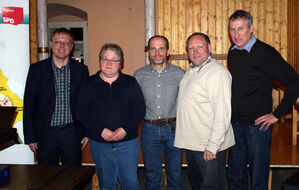Referent Hans- Ulrich Pfaffmann, MdL (Mitte), mit Ruth Müller, MdL(3.v.li.), und den SPD Mandatsträgern aus Stadt und Landkreis