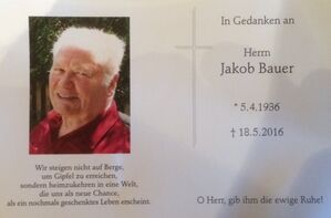 Tief bewegt nehmen wir Abschied von einem hochgeschätzen Kommunalpolitiker, unserem Mitglied und ehemaligen Kreisrat Jakob Bauer.