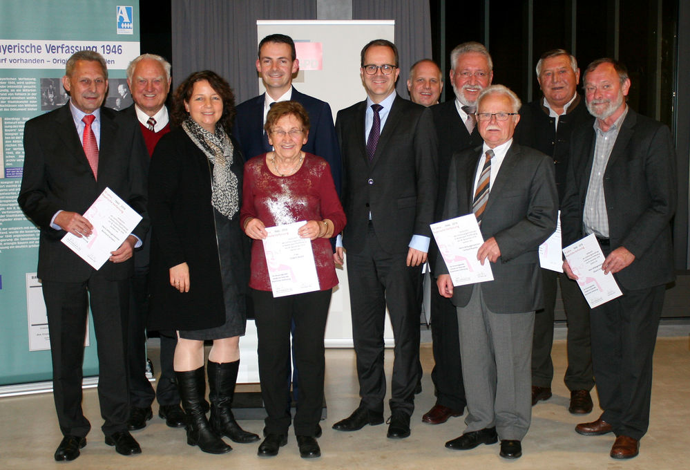 Sorgten dafür, dass der Verfassungsauftrag, die Demokratie in den Kommunen zu leben, erfüllt wird: (v.l.) Reinhard Schwarz, Fritz Geisperger, Ruth Müller, MdL, Martin Kreutz, Elsbeth Wührl, Markus Rinderspacher,MdL, Martin Schießwohl, Reinhold Perlak, MdL a.D., Gerhard Petschke, Franz Bayer und Eduard Grotz