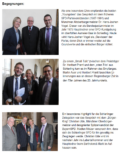 Für die SPD-Ortsvorsitzende Madlen Melzer und Marktrat Armin Buchner war es eine Premiere, während Martin Auer als Betriebsratsvorsitzender der BayernSPD schon mehrmals an dem Festakt zur Verleihung des Wilhelm-Hoegner-Preises teilgenommen hatte. Die Einladung zur diesjährigen Preisverleihung an den aus der Oberpfalz stammenden Publizisten und Journalisten, Prof. Dr. Heribert Prantl, hatte er gleich beim Schopfe gefasst, um mit Madlen Melzer und Armin Buchner dem designierten Ministerpräsidenten(kandidaten) Christian Ude, die Unterstützung zuzusagen.