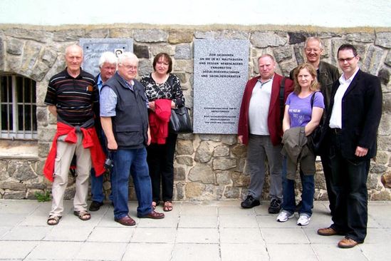 Mitglieder des AK Labertal an der Gedenktafel für die ermordeten Sozialdemokraten im KZ Mauthausen