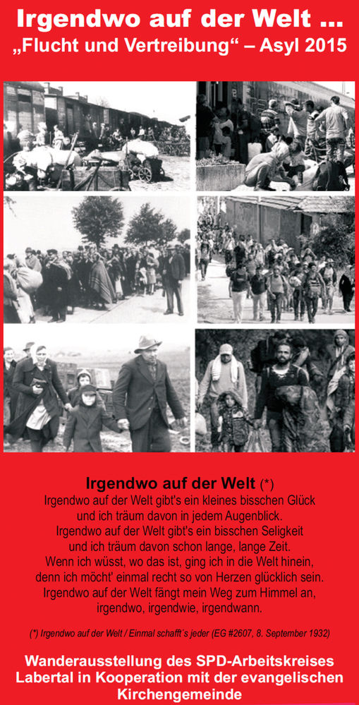 Dabei wird unter dem Motto „Irgendwo auf der Welt …“, angelehnt an den bekannten Titel der Comedian Harmonists, die Brücke zur aktuellen Asylproblematik geschlagen.