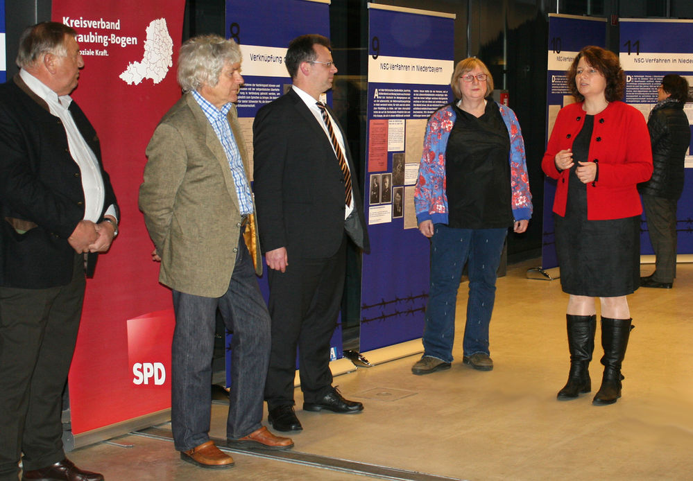 SPD-Orts und -Kreisvorsitzender Martin Kreutz begrüßte auch im Namen des Arbeitskreises Labertal die zahlreichen Gäste. Landtagsabgeordnete Ruth Müller erinnerte in Ihrem Grußwort, dass die Ausstellung am 6. Mai 2014 zum ersten Mal im Staatsarchiv München gezeigt und für die Ausstellungsreihe im Labertal um ausgesuchte niederbayerische Fälle ergänzt wurde. Müller lobte den Anspruch des Arbeitskreises Labertal, „Kultur und Bildung auf das Land zu holen““. „Die NS- Gewaltverbrechen und ihre Aufarbeitung sind ein wichtiges Kapitel in unserer deutschen Geschichte und wir werden daran erinnern, damit das nie wieder passiert“, so Müller weiter, die an ein Zitat Willy Brandts erinnerte und forderte: „Wir sollten uns zu unserer Demokratie bekennen, sie verteidigen und mehr Demokratie wagen.“