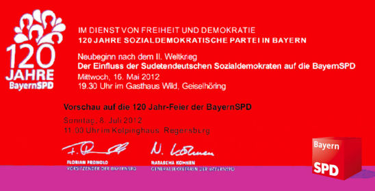 Im Vorfeld des kleinen Festabends besteht die Möglichkeit die Ausstellung „Sudetendeutsche Sozialdemokraten“ im Pfarrsaal der ev. Kirche (50m vom Gasthaus entfernt) zu besuchen. Treffpunkt 18 Uhr an der ev. Kirche.